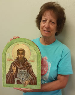 Thought you might like to see the St. Francis print framed. Nice connection (and result) from the woman working at Michael's in ABQ, who gets to follow her passion and talent, and spread joy even if she doesn't have her own equipment and shop. At least that is what was stirred in our meetings and overflowed to other clients in line. Yes, I feel these icons are portals that lead to the quickening of the Holy Spirit within each and all, and then the illusory barriers disappear and love flows naturally. Thank you.